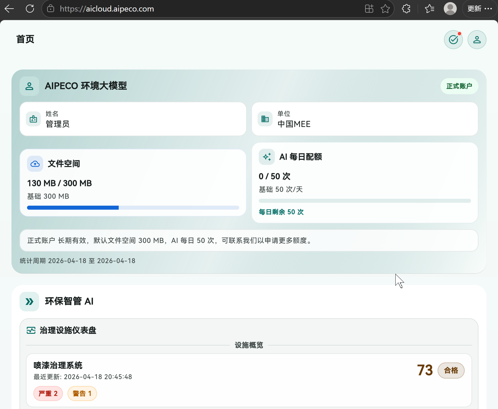 • 智能给出状态评估:内置的环保智管AI直接给出设备状态,通过良好、合格、不合格,清晰界定设备状态,同时给出警示信息,比如耗材更换周期、易损件易耗品状态等。