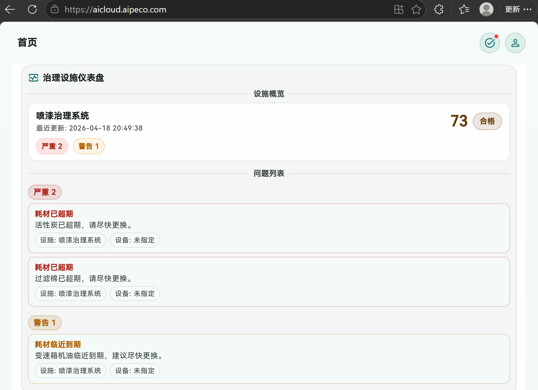 4. 环保智管AI(能降本、防风险):深度解读数据,精准预判故障、推送预警,提前规避停机损失,确保设施运维合规,减少额外损耗,实现降本与合规双向保障。